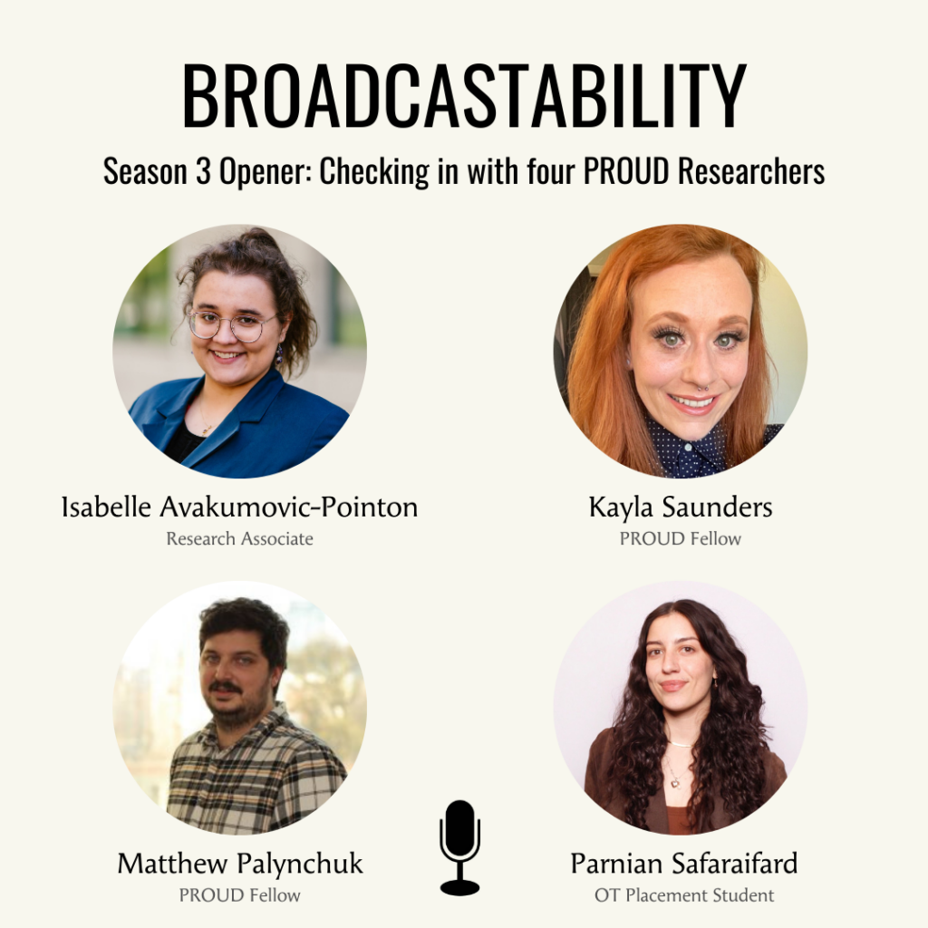 - The first episode checks in with four PROUD-associated researchers—Isabelle Avakumovic-Pointon, Kayla Saunders, Matthew Palynchuk, and Parnian Safaraifard.